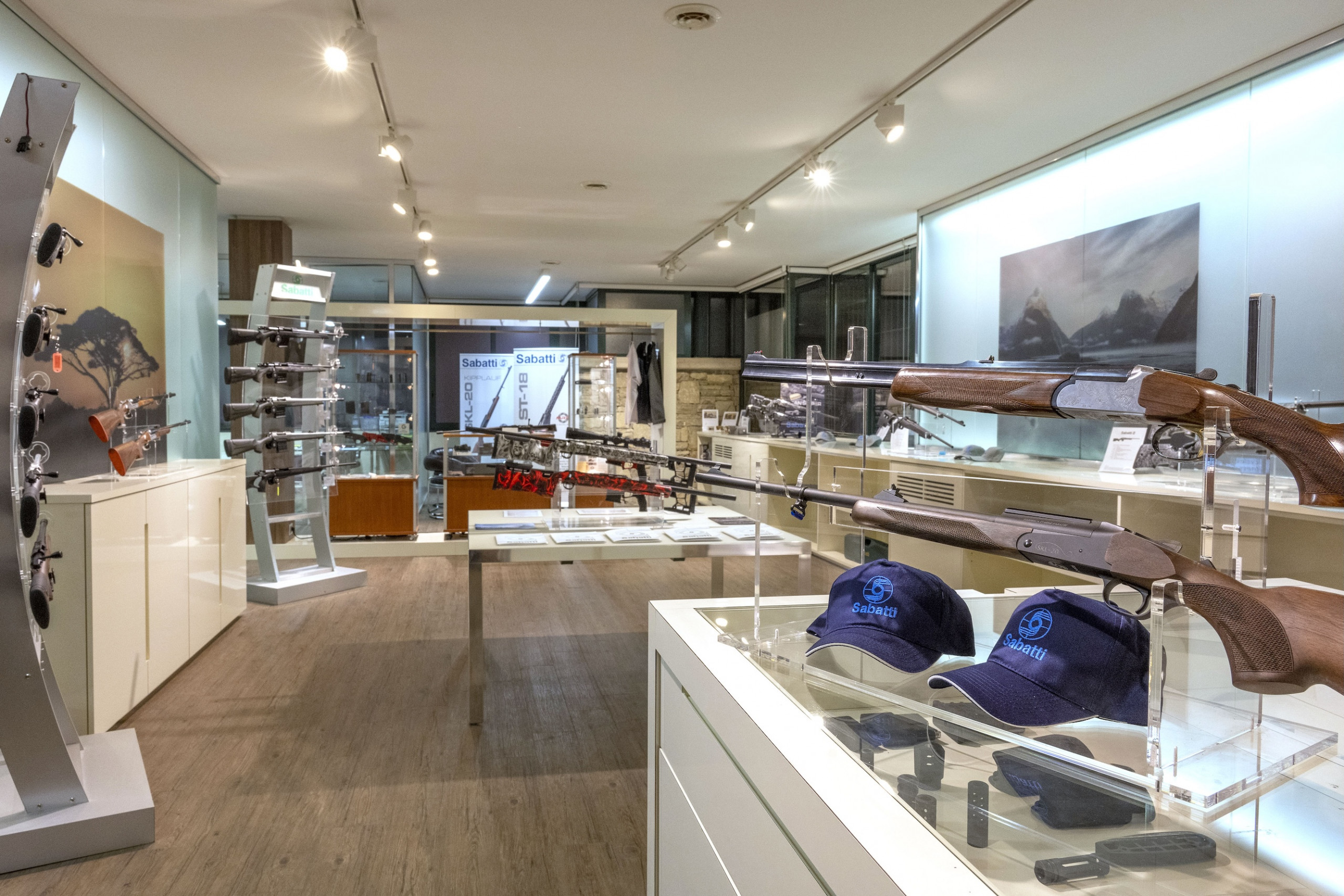 Oltre alle armi, lo showroom offre una selezione di accessori originali Sabatti, insieme ad altri di terze parti, consentendo alla clientela di configurare al meglio le proprie armi, per ottenere il massimo delle prestazioni sia a caccia sia nelle competizioni di tiro sportivo.