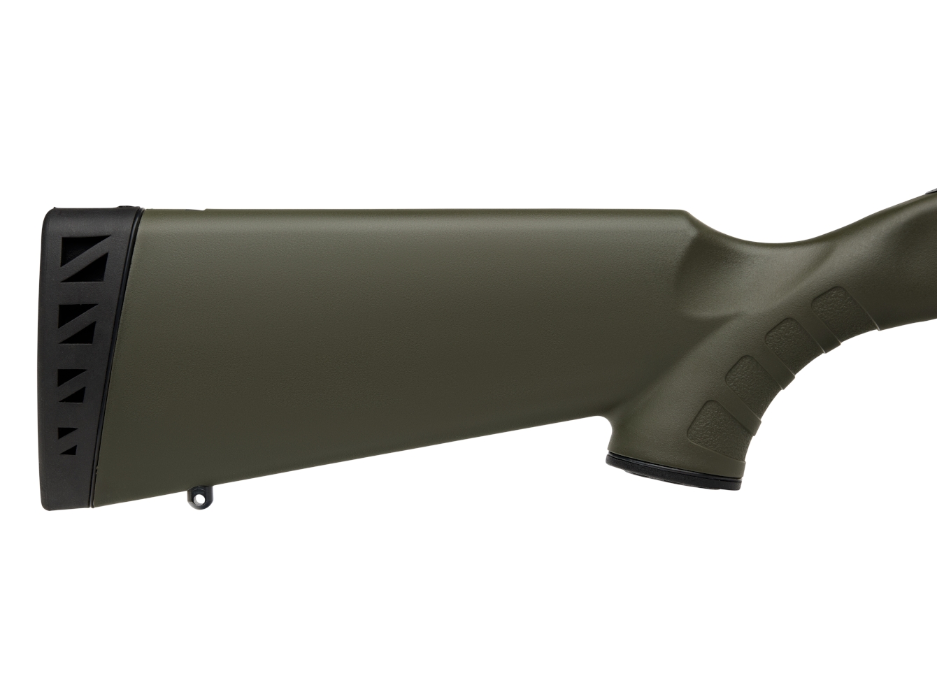 Nere opache antiriflesso, le canne (quella rigata è la superiore) misurano 508 millimetri; il calcio è in materiale sintetico impermeabile.