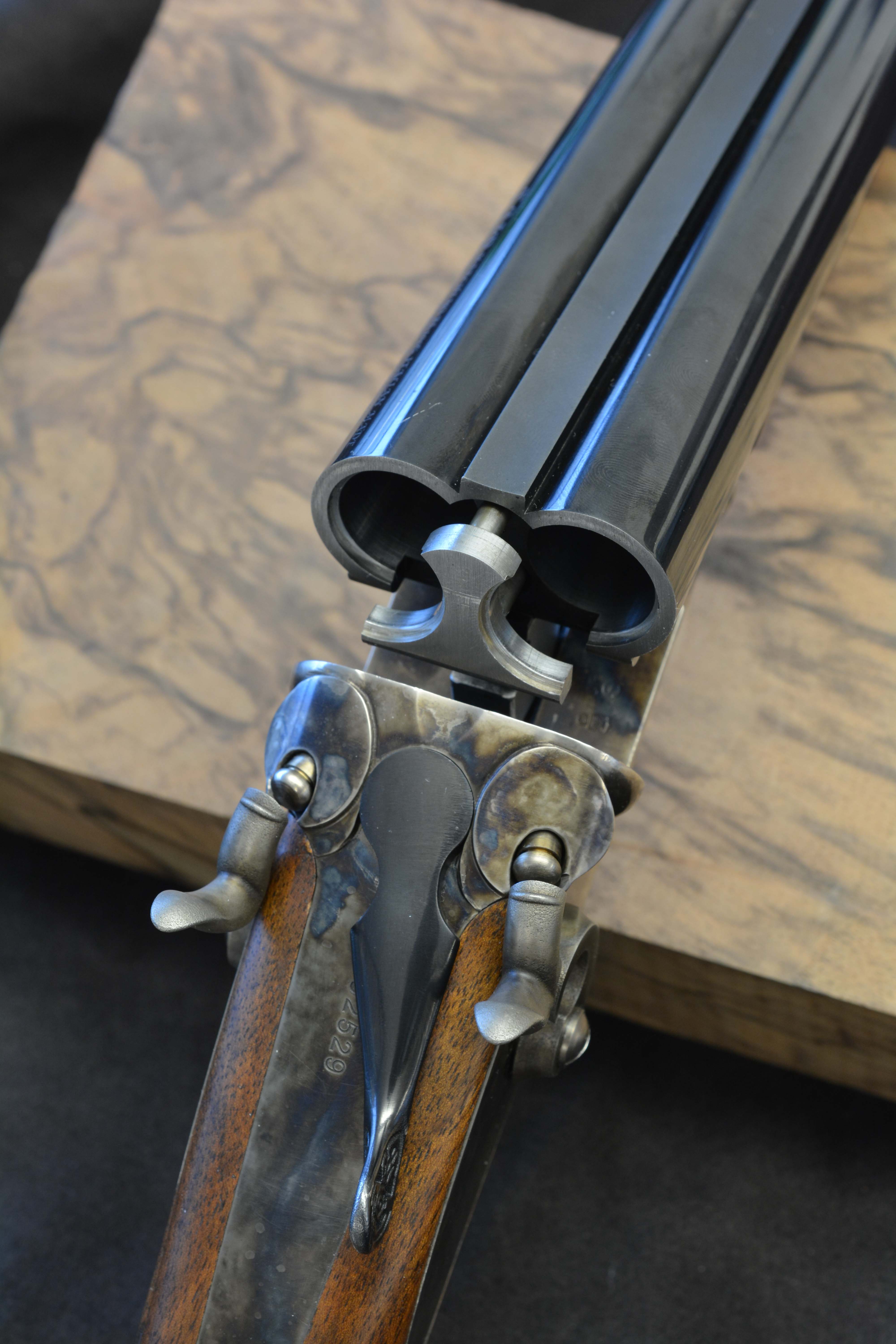 La bascula integrale è ricavata da un massello forgiato in acciaio 16 / trilegato, per asportazione di truciolo. Il metallo corre a filo legno e l’incassatura risulta estremamente precisa, al livello di realizzazioni superiori. Non si notano scalini o imperfezioni, indice di una lavorazione accurata in ogni parte come le doppiette richiedono.