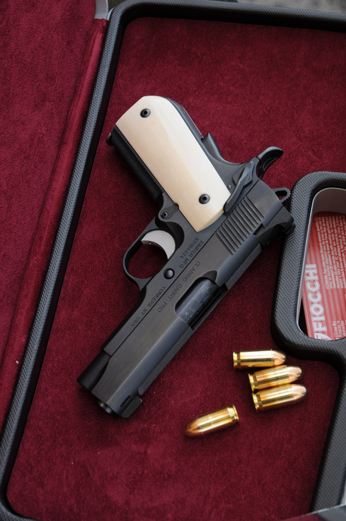 Dal Custom Shop del marchio americano Kimber, una modello 1911 che si distingue per le finiture di pregio: dall’impugnatura in osso al trattamento con effetto blu cangiante del fusto e del carrello, fino alla canna di colore scuro. Un vero oggetto da collezione che, oltretutto, spara anche molto bene.