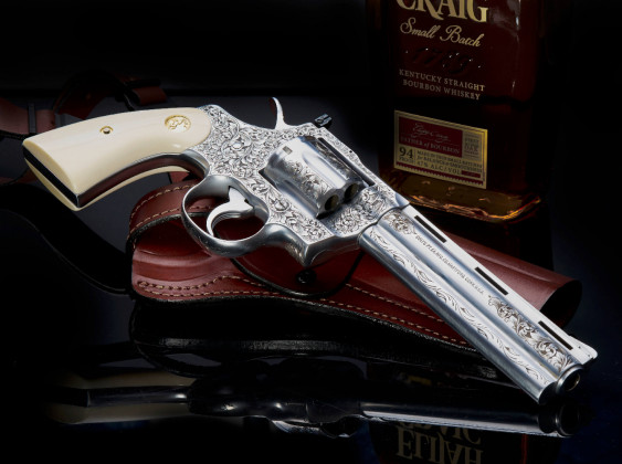 Il Virgil Graham’s Colt Single action Army (1991, 10.983 dollari) è un revolver calibro .45 Lc con canna di 120 millimetri e finitura royal-blu sul metallo; .357 magnum invece per The ’78 Duguet Python, revolver Colt Python inciso nel 1978 da Thierry Duguet (canna di 152 millimetri, 9.895 dollari) con una lavorazione a contrasto della finitura originale in acciaio satinato.