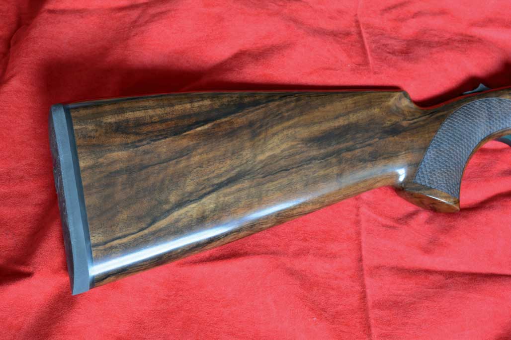 Il calcio è a schiena d’asino, con guancialino a goccia allungata che si rivelerà comodo nell’uso pratico. A completare il tutto un calciolo in gomma piena da 15 mm, più che sufficiente a contenere le reazioni mai scomposte dell’RK1. Calcio destro o sinistro sono realizzati senza supplemento su richiesta del cliente. La lunghezza totale del calcio dal grilletto è settata di fabbrica a circa 370 mm; l’impugnatura è naturalmente a pistola, di foggia allargata, e consente una presa efficace da parte della mano forte.