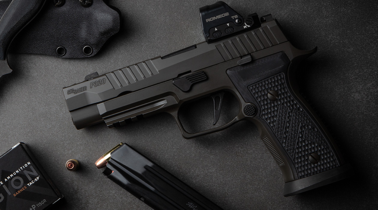 L’Axg Legion, ultimo allestimento della Sig Sauer P320, si presenta come una pistola full size con impugnatura in metallo.