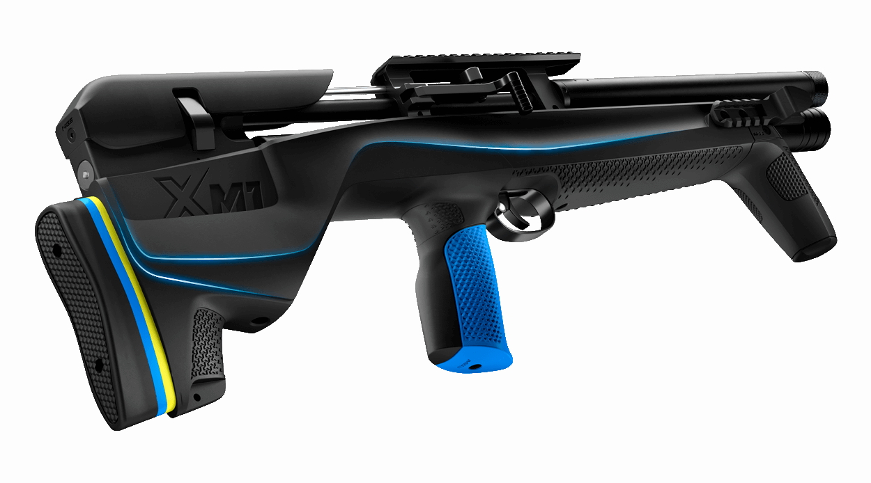 Design estremo, prestazioni notevoli: Stoeger presenta così la XM1 Bullpup, la sua nuova carabina bullpup ad aria precompressa che compatta in 70 centimetri l’ormai classica XM1. Elevato il coefficiente di modularità: sono intercambiabili sia il poggiaguancia sia l’impugnatura a pistola (standard blu, XL nera); i distanziatori colorati permettono di regolare la lop.