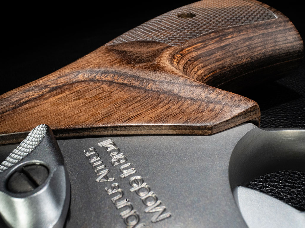 Rispetto al Judge versione base lo caratterizzano una serie di miglioramenti funzionali e lo stile particolarmente ricercato che nasce dalla sintesi tra l’impugnatura in legno e la finitura lucida spalmata a mano sull’acciaio inossidabile di canna (76 millimetri), tamburo (cinque colpi) e fusto.